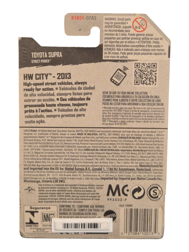 Toyota Supra 1993 (Laranja): Um dos carros mais memoráveis, transformado de sucata em uma máquina de "dez segundos" no primeiro filme, e usado por Brian na corrida final contra Dom.
